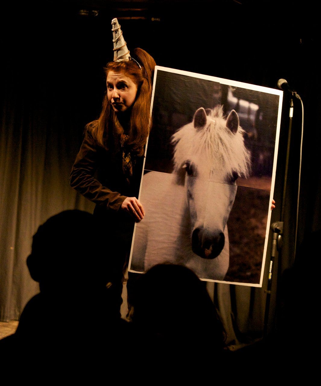 Some years ago I made a show called Creatures that I was really proud of. In it I played mythical/imaginary creatures. One was a horse who had surgery to become a unicorn (pictured below) and one was a Borrower who was addicted to Tipp-Ex. To make the Tipp-Ex bottle I went to a shop called Pentonville Rubbers (Rubbers! hee hee) and bought some polyethylene foam to build the oversized bottle. I have always liked massive visual props and costumes.